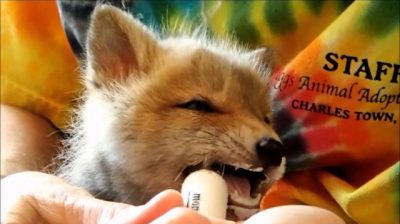 在弗吉尼亚州的美国前后在乡下散步, 一对夫妇遇到小的被遗弃的狐狸. 他是非常虚弱和脱水, 因为女人原是兽医和, 这对夫妇决定治疗得到家里的小动物. 他们把她关在笼子里,喂了她5天, 直到我们变强. 然后他们搬到了蓝脊野生动物保护区, 为了协助重返社会,并返回到自然的环境. 应十分小心地狐狸, 因为它是从最普通承运人的狂犬病, 咬一口可能致命.