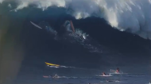 2015 年 1 月 21 日,星期三,毛伊岛 Peahi 海滩, 有人记录一群消失在巨浪的冲浪者. 这些图像是令人印象深刻.