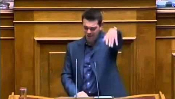 亚历克西斯·齐普拉斯 (Alexis Tsipras) 于 2012 年在议会发表演讲, 向 Adwni 乔治亚季斯.