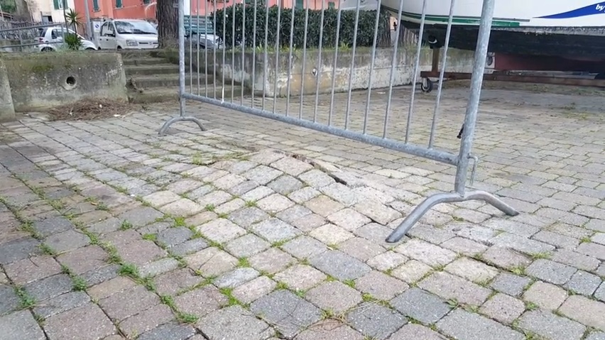 压力波, 铺装创建一个引人注目的效果在海边小镇的拉斯佩齐亚, 在意大利. 当一个大浪袭击海岸, 预定的升起几英寸.