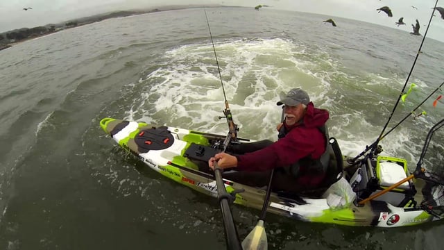 皮划艇运动遇到驼背鲸浮出水面觅食