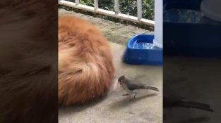 这只狗似乎已决定对这只鸟进行报复。