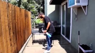 在他的工作场所, 一个男人向我们展示了他用橡皮筋杀死苍蝇的特殊能力.