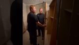 在爱荷华州, 美国, 父亲和儿子背对篮筐尝试投篮. 父亲第一次尝试就成功了, 然后轮到孩子们了……