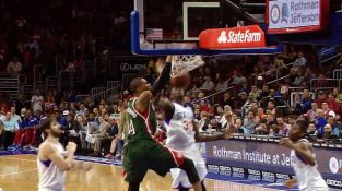 扬尼斯-阿德托昆博再次进入NBA日前10名, 与壮观逆风飞行在费城 76 人 (2015 年 13 月 4 日).
