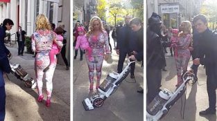 奇怪的镜头显示,一名帮手在说唱歌手 Ice-T 的妻子和女儿面前用吸尘器清理人行道。当时,他正沿着纽约西百老汇大街行走, 美国, 11月4日, Stuart Nasar spotted Coco Austin dressed in a [...]
