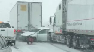 在高速公路I-44 STOU密苏里州美国, 女人管理在最后一分钟得到了她的车, 前一辆卡车相撞它滑动结冰的道路上. 事件发生在8日 [...]