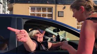 摩托车大奖赛: 他跳过一个倒下的自行车,并继续比赛