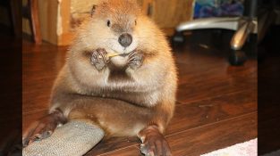 Ο贾斯汀海狸, 一个年轻的海狸发现孤儿, 由住房野生第二次机会野生动物在华盛顿的雇员托管. 贾斯汀一直试图在房子里建水坝,而他已经咀嚼了一切 [...]