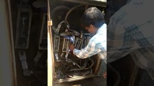 在电力保险丝盒的前面, 在印度的两家电工正在努力修复受损. 保险丝已被删除, 并用导线替代. 防止冲击在这个唯一 [...]
