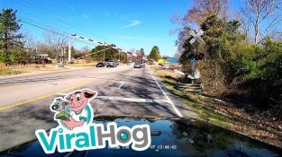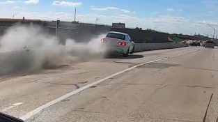 在高速公路上, 一辆摩托车和一辆宝马开始他们之间的竞争. 该车司机失控,落在保护岛屿.