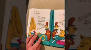 一名男子正在阅读儿童读物《博士》. 苏斯的 – 布朗·坎莫先生, 你是否可以?”随着说唱歌曲的节奏.