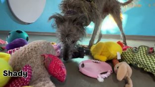 在爱尔兰的“Dogs Trust Ireland”狗狗收容所, 狗每年都有机会从满屋子的宠物玩具中选择他们的新玩具.